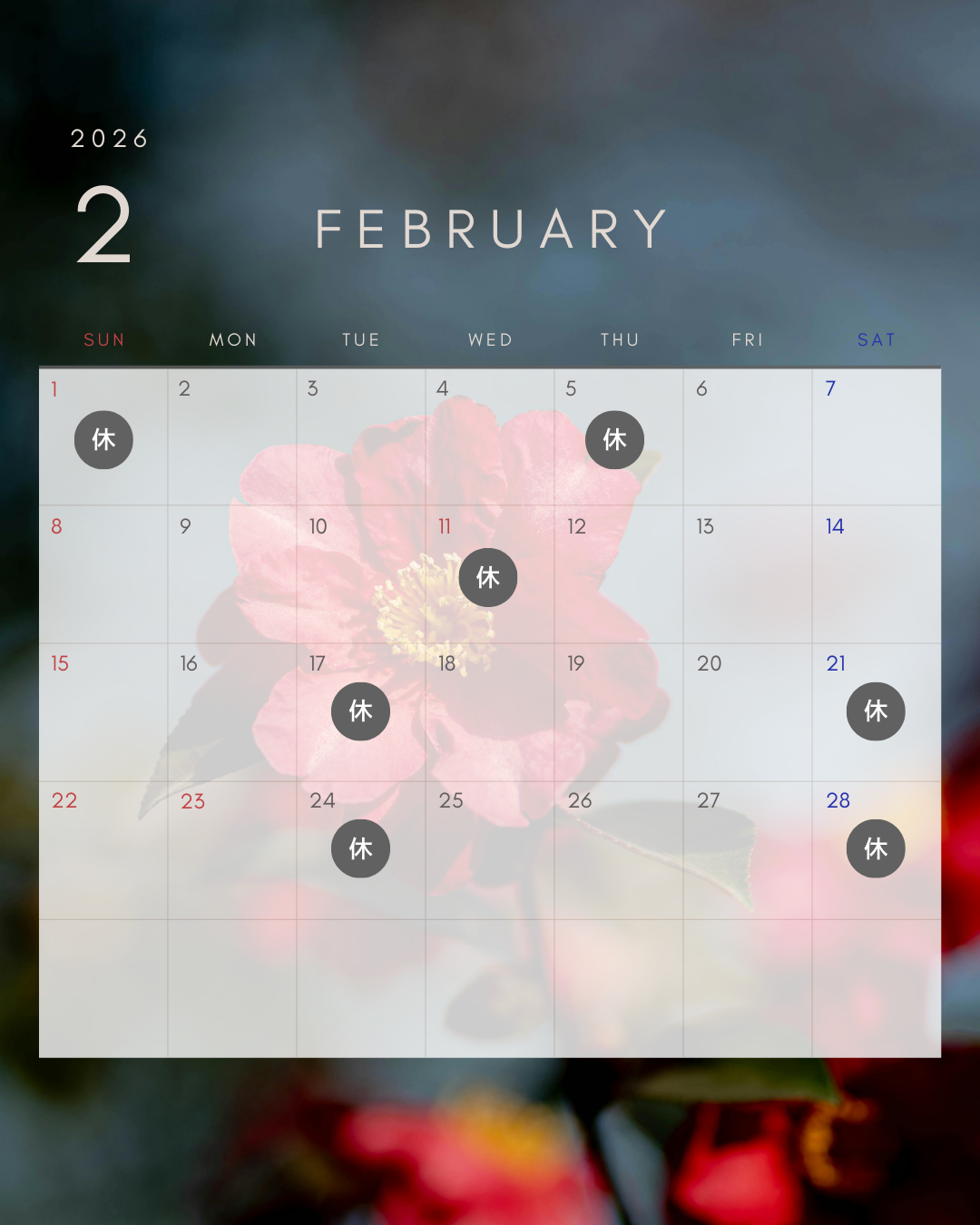 本年もよろしくお願い申し上げます 1/23より営業時間が変更となります 平日土曜:9:30〜17:30 日祝:10:00〜17:30 |
